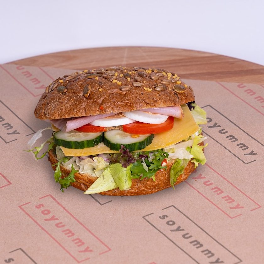 Ham - kaas - ei - tomaat - sla - komkommer - yoghurt-dille dressing