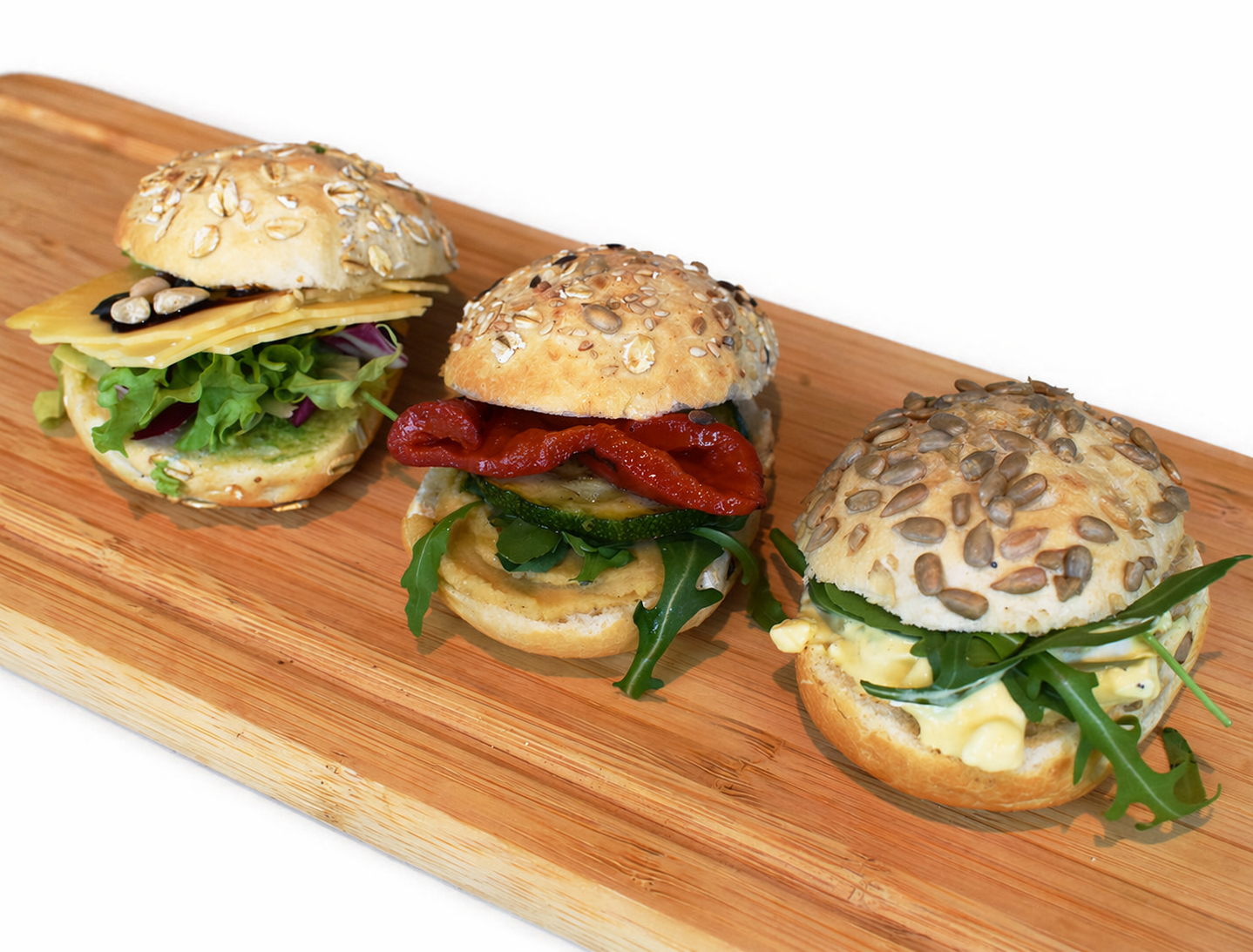 EIERSALADE Huisgemaakte eiersalade - komkommer - rucola HUMMUS Huisgemaakte hummus – gegrilde courgette – rode paprika - sla OLD AMSTERDAM Old Amsterdam - gebakken champignons pittenmix - balsamicostroop - sla Niet glutenvrij te bestellen