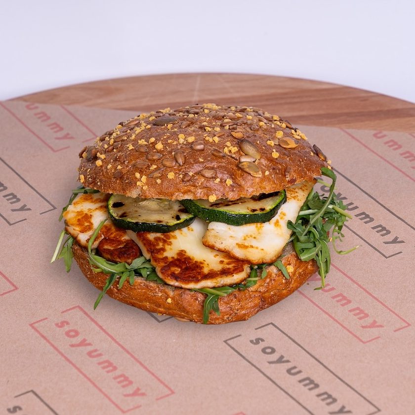 Halloumi - gegrilde courgetti - rucola - pesto